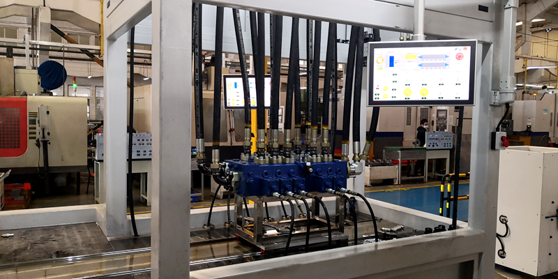 該試驗(yàn)臺(tái)應(yīng)用于工程機(jī)械領(lǐng)域中多路閥的性能檢測(cè)。既能滿足多路閥通用性能的標(biāo)準(zhǔn)測(cè)試,而且還能夠?qū)Σ煌吞?hào)多路閥的各項(xiàng)特殊功能進(jìn)行模擬測(cè)試,對(duì)工程機(jī)械整體技術(shù)水平提升有著決定性的作用。